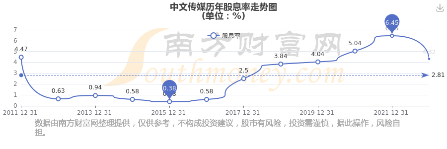 中文传媒最新一次公布的分红方案为10派7.5元。本次权益分派股权登记日为2023年6月14日,除权除息日为2023年6月15日,派息日为2023年6月15日。
