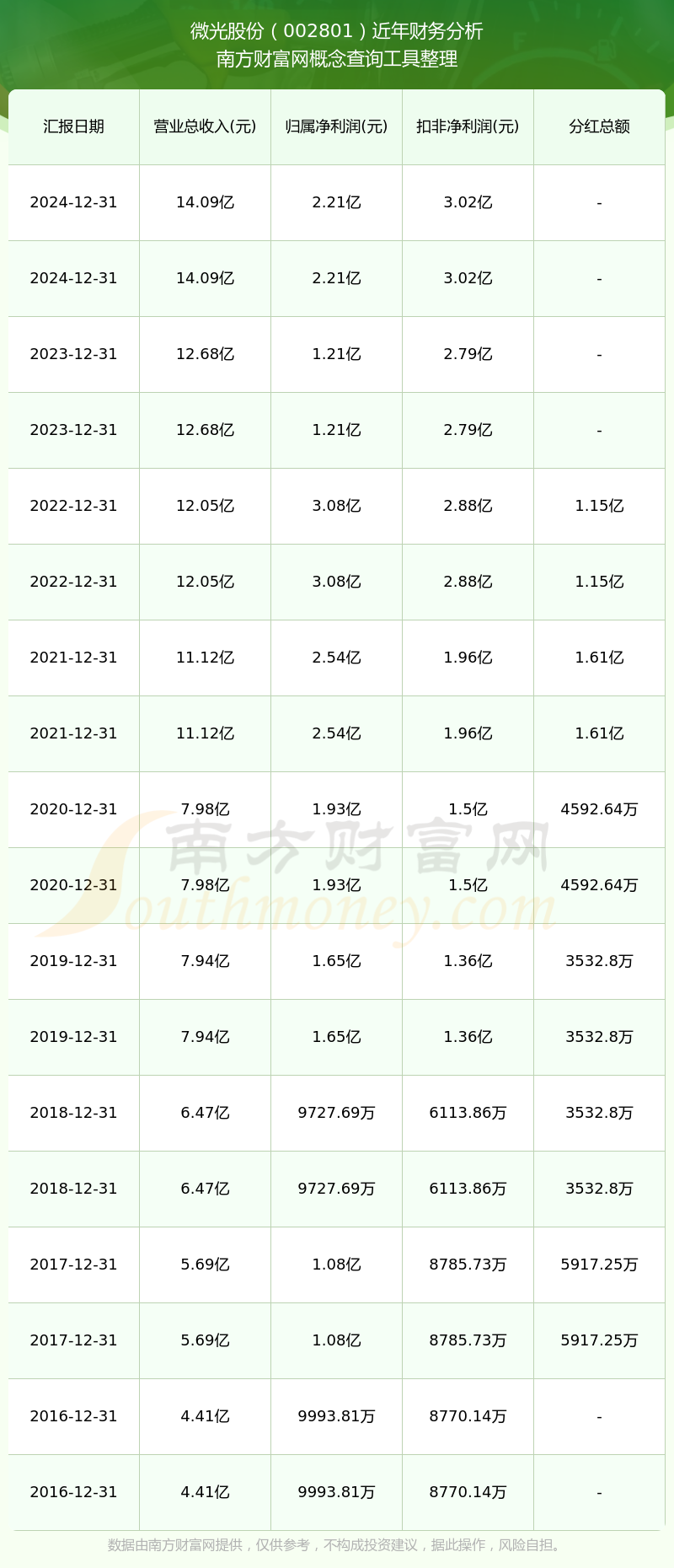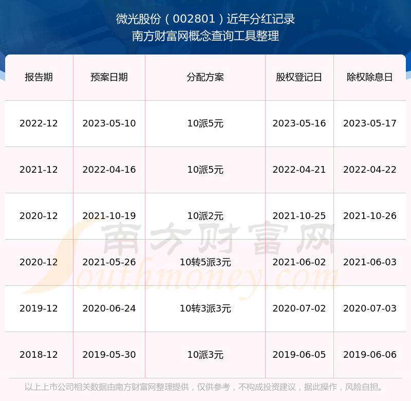 微光股份历年分红派息情况如下表所示: