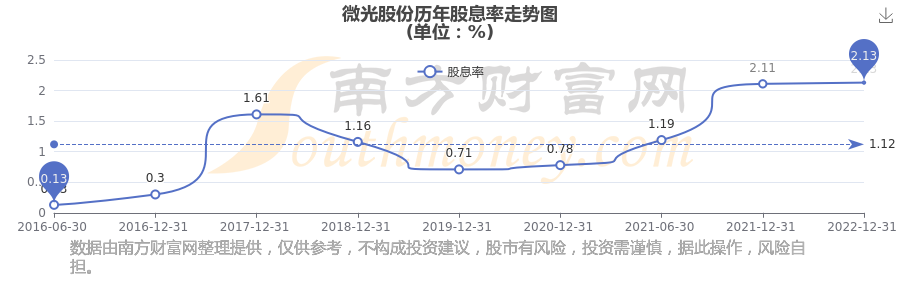 微光股份历年股息率走势如下图: