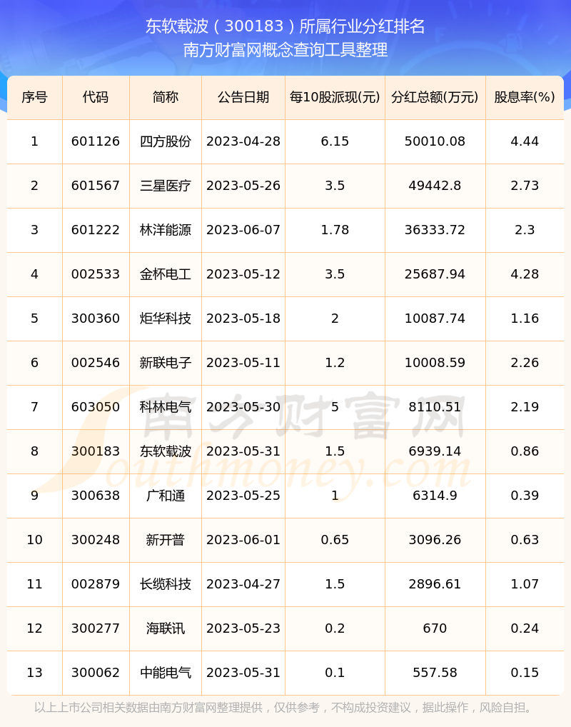 二、东软载波300183行业分红排名