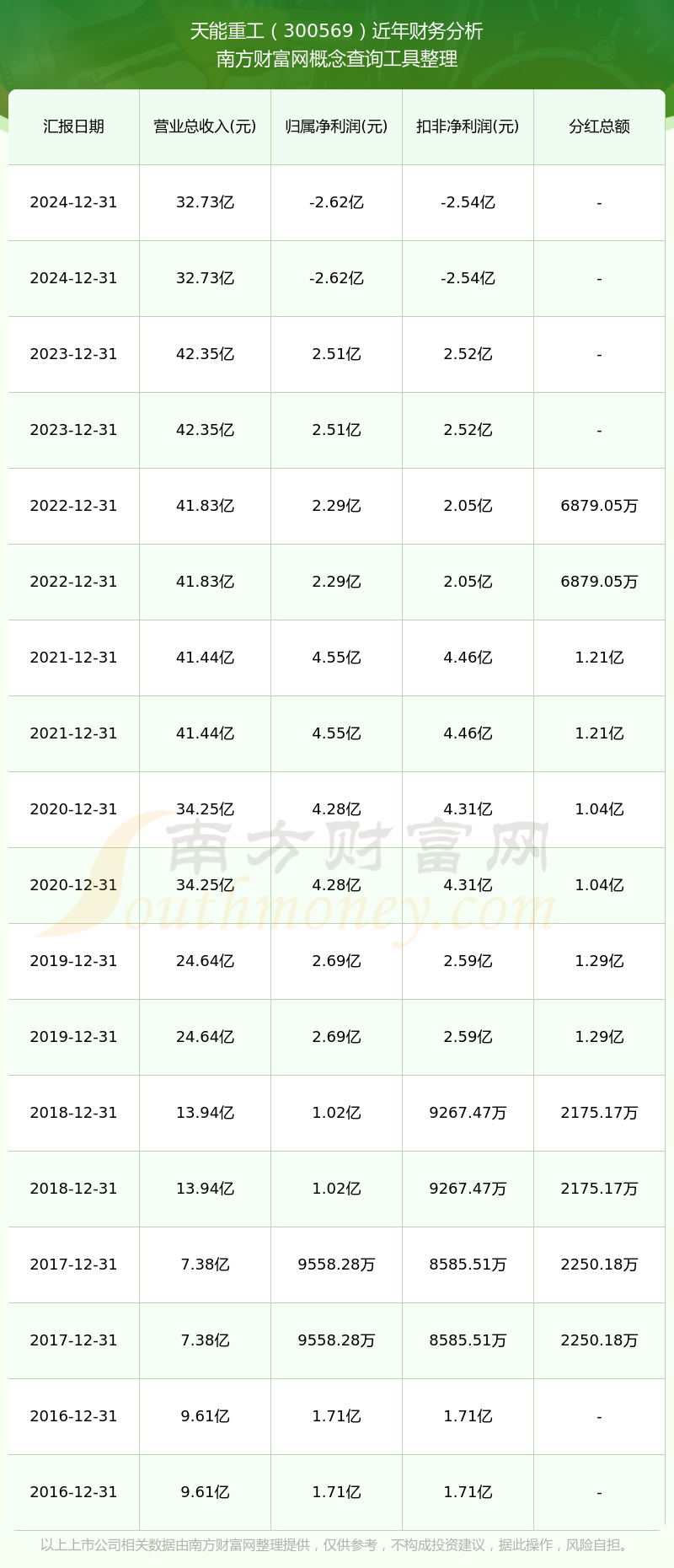天能重工历年分红派息情况如下表所示: