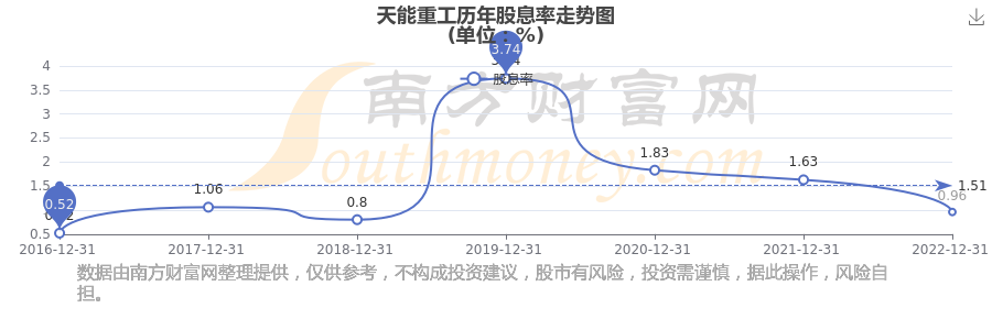 天能重工历年股息率走势如下图: