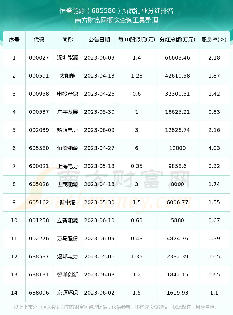 二、恒盛能源605580行业分红排名