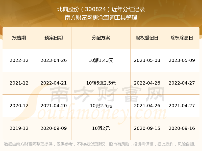 北鼎股份最新一次公布的分红方案为10派1.43元。本次权益分派股权登记日为2023年5月8日,除权除息日为2023年5月9日,派息日为2023年5月9日。