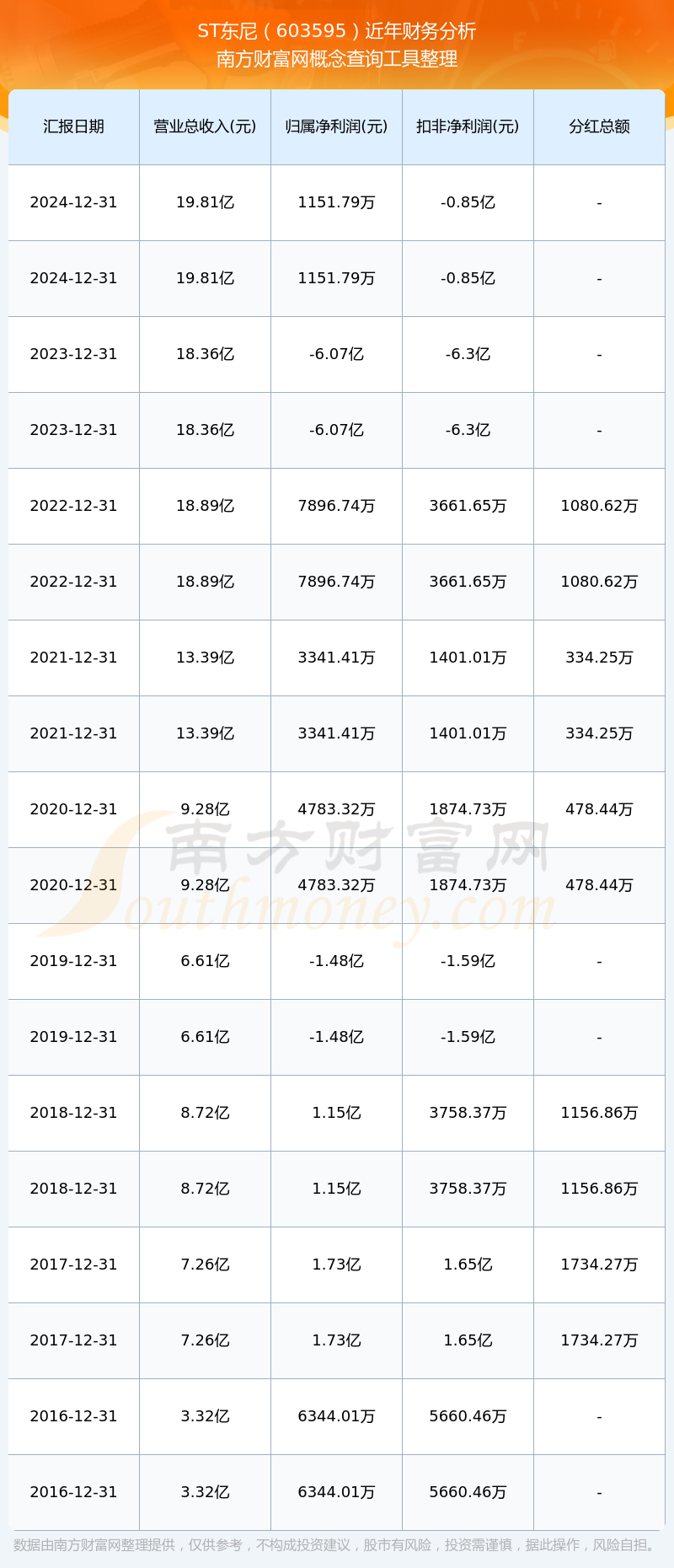 ST东尼最新一次公布的分红方案:10派0.4649元。
