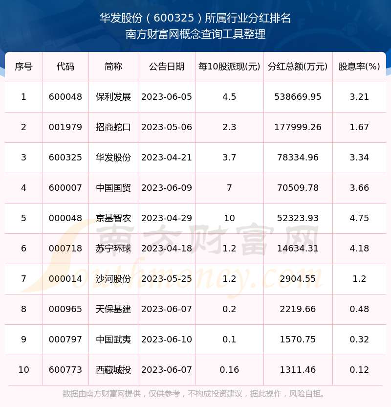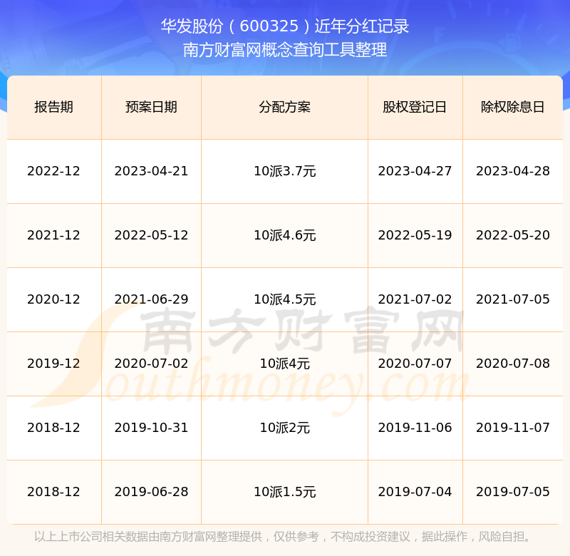 华发股份最新一次公布的分红方案为10派3.7元。本次权益分派股权登记日为2023年4月27日,除权除息日为2023年4月28日,派息日为2023年4月28日。