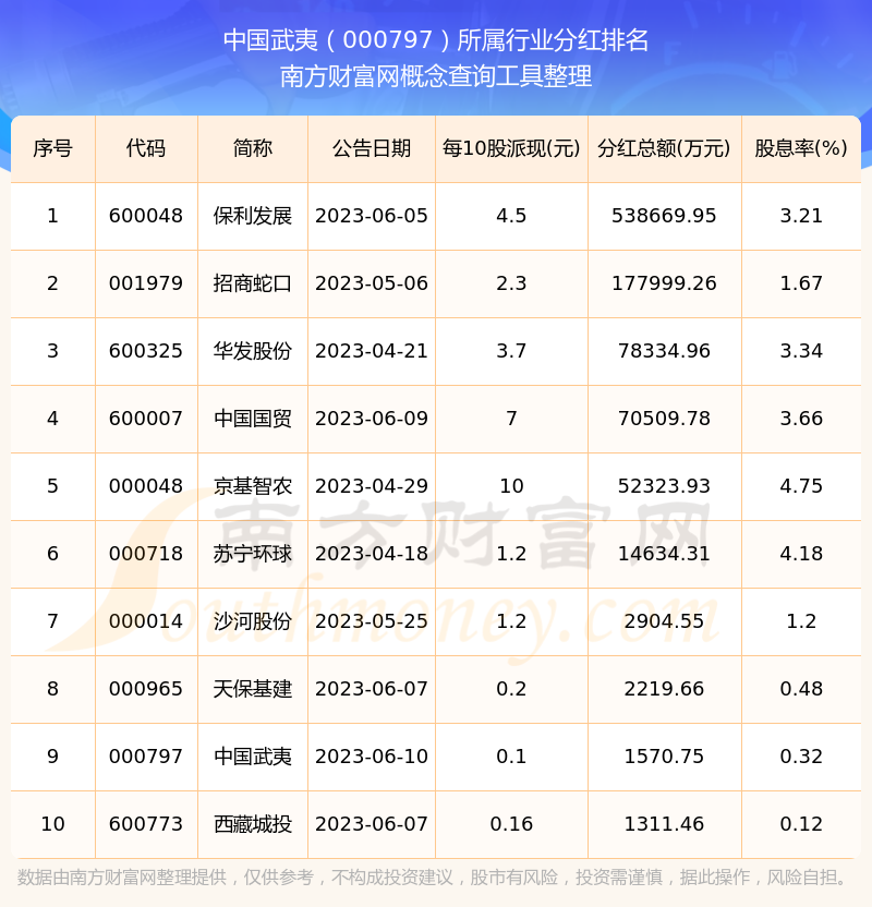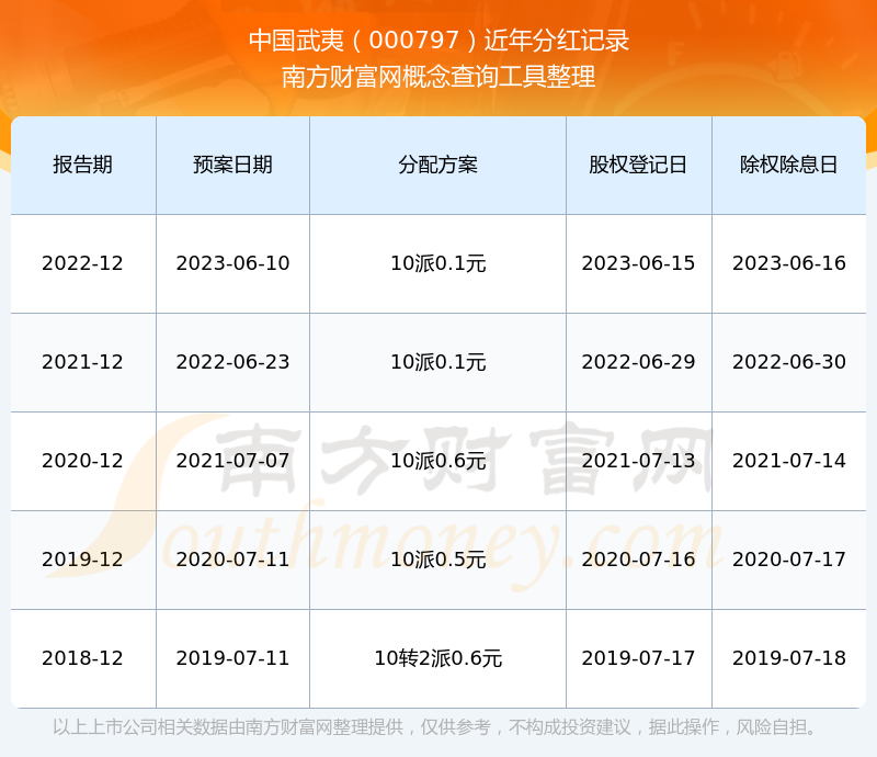 中国武夷最新一次公布的分红方案:10派0.1元。