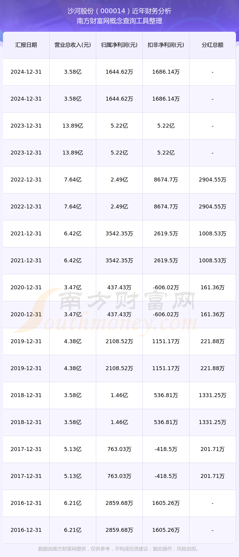 沙河股份公司2024年实现营收3.58亿元,净利润1644.62万元,毛利率51.71%。