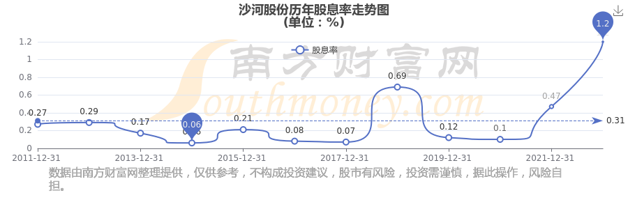 沙河股份最新一次公布的分红方案:10派1.2元。