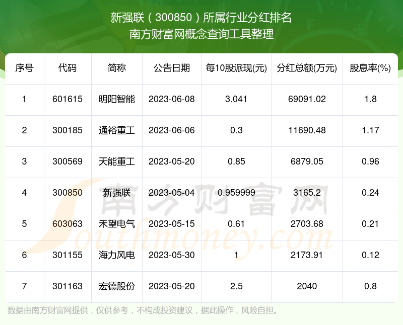 按照开云手机web版登录入口趋势选股系统统计,新强联所属行业为风电设备行业,风电设备行业分红排名情况如下表:
