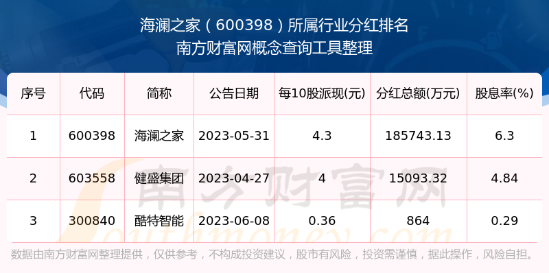 按照开云手机web版登录入口趋势选股系统统计,海澜之家所属行业为服饰行业,服饰行业分红排名情况如下表: