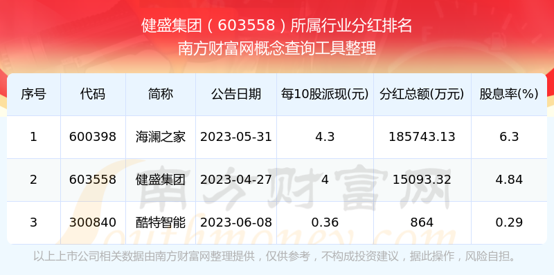 按照开云手机web版登录入口趋势选股系统统计,健盛集团所属行业为棉袜行业,棉袜行业分红排名情况如下表: