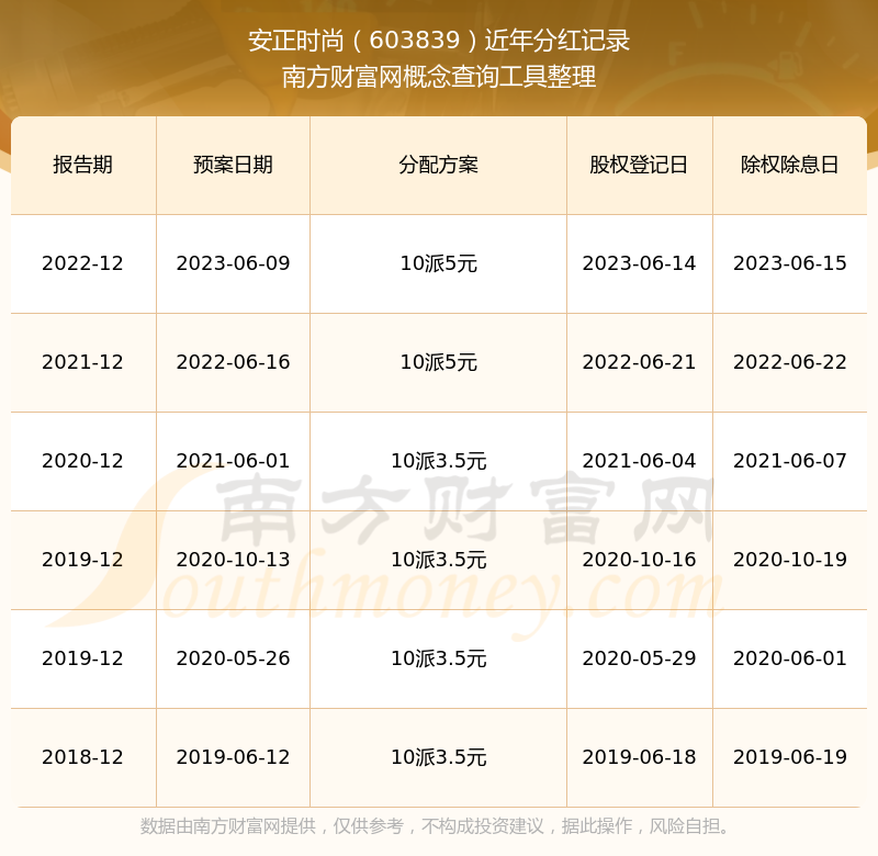 一、安正时尚(603839)股票分红记录