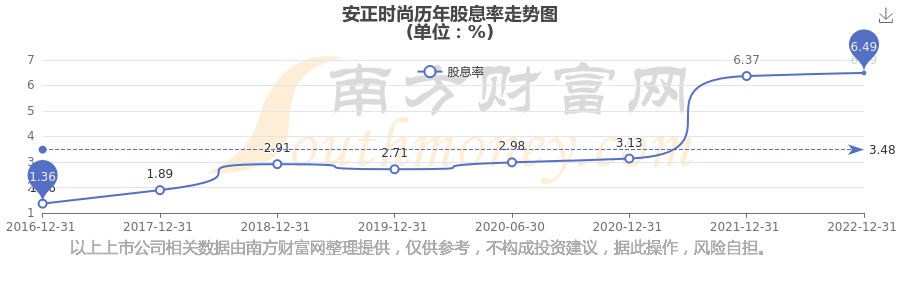 近年安正时尚年度股息率走势如下图: