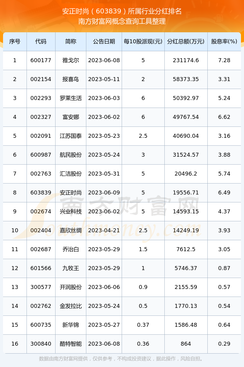 二、安正时尚603839行业分红排名