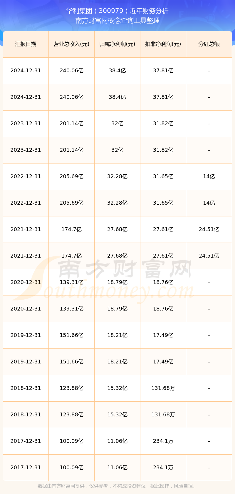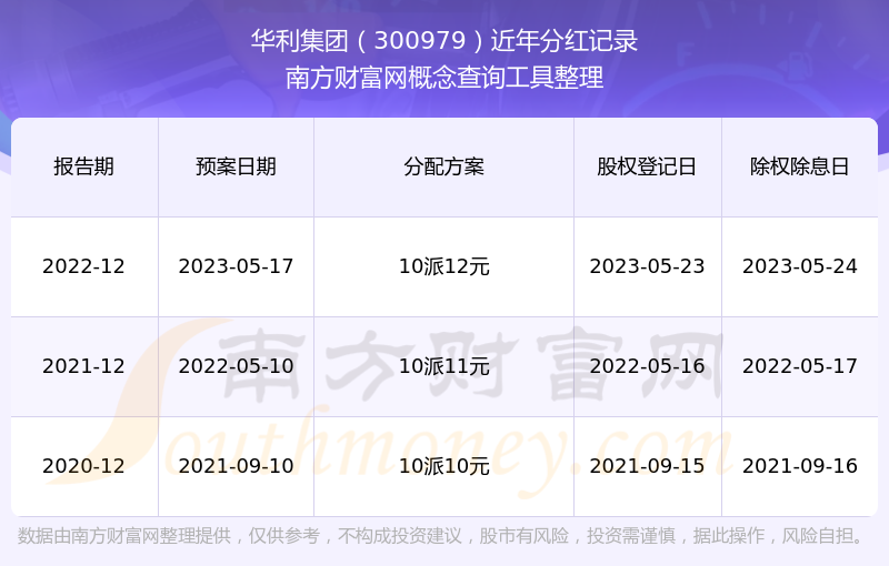 华利集团历年分红派息情况如下表所示: