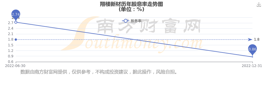 翔楼新材最新一次公布的分红方案为10派3元。本次权益分派股权登记日为2023年5月18日,除权除息日为2023年5月19日,派息日为2023年5月19日。