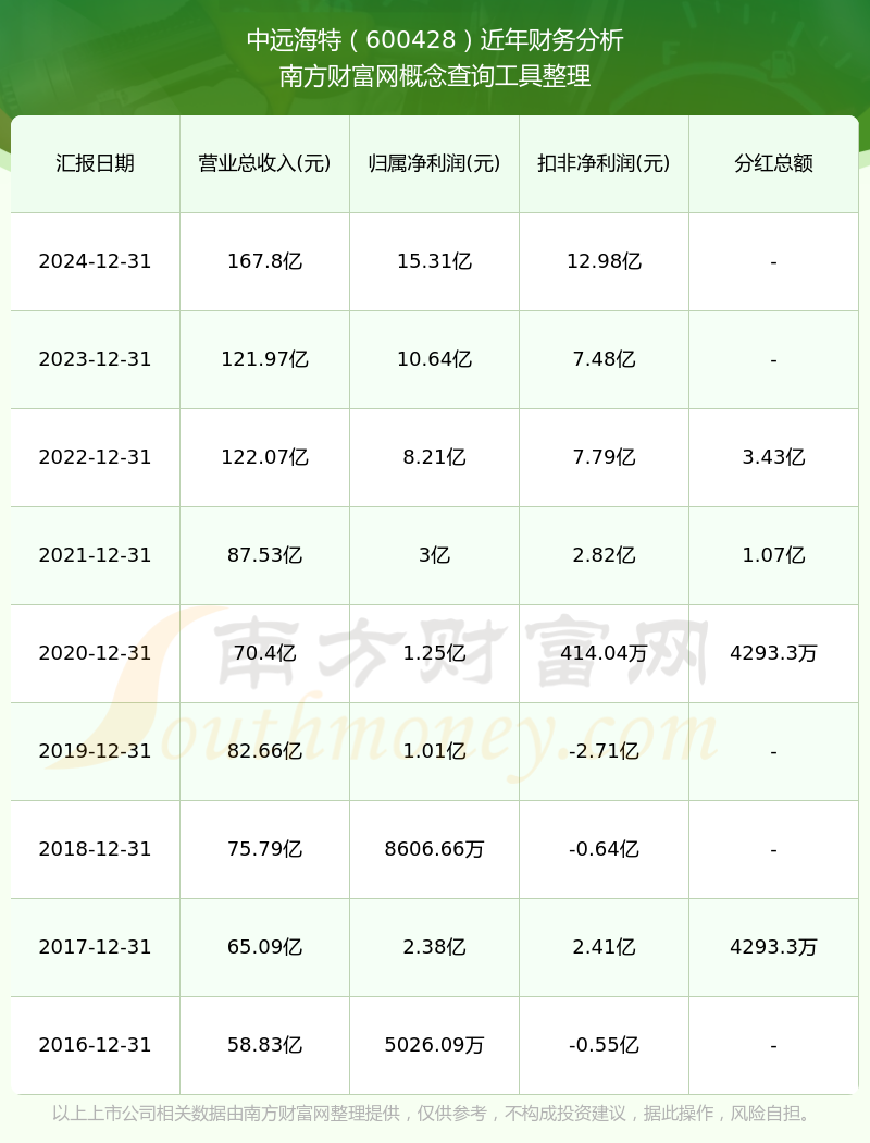 中远海特公司2024年实现营收167.8亿元,净利润15.31亿元,毛利率21.84%。