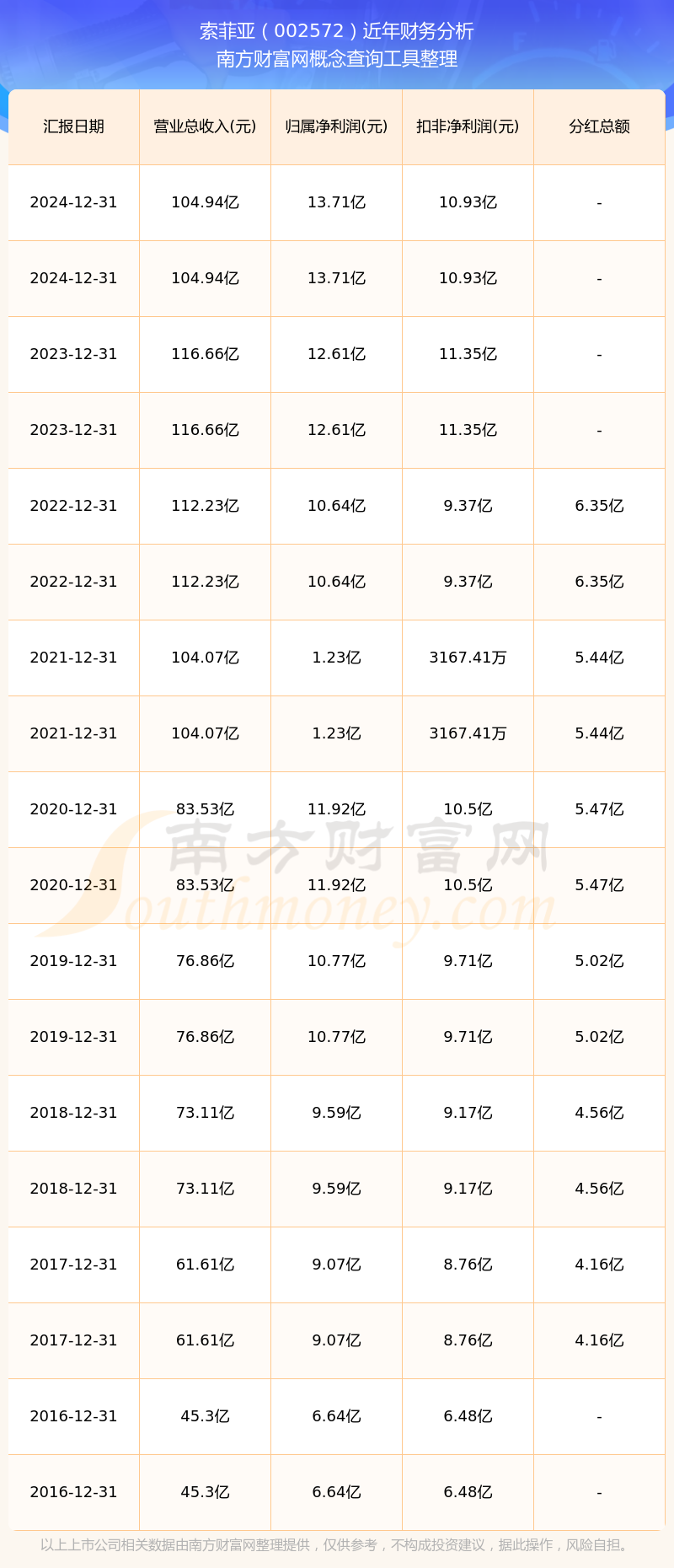 索菲亚公司2024年实现营收104.94亿元,净利润13.71亿元,毛利率35.43%。