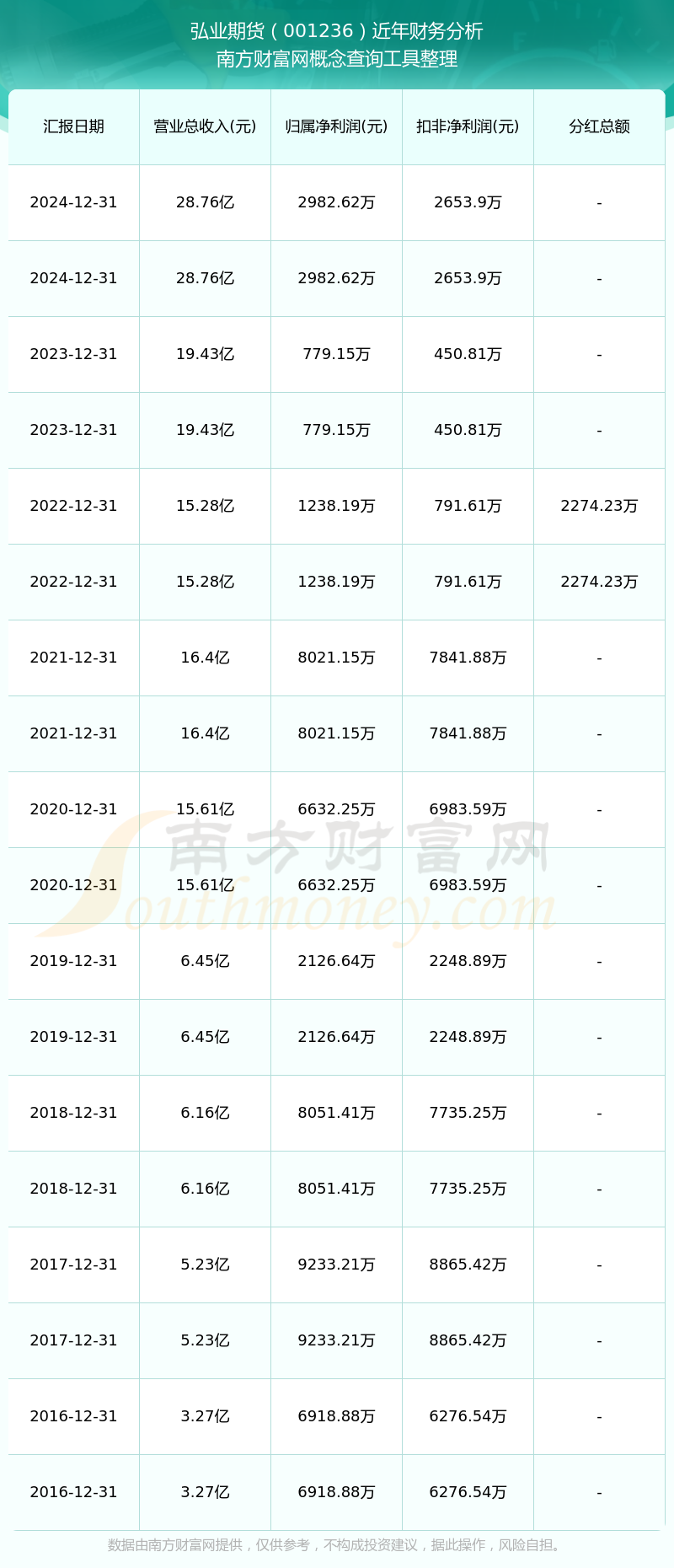 弘业期货历年分红派息情况如下表所示: