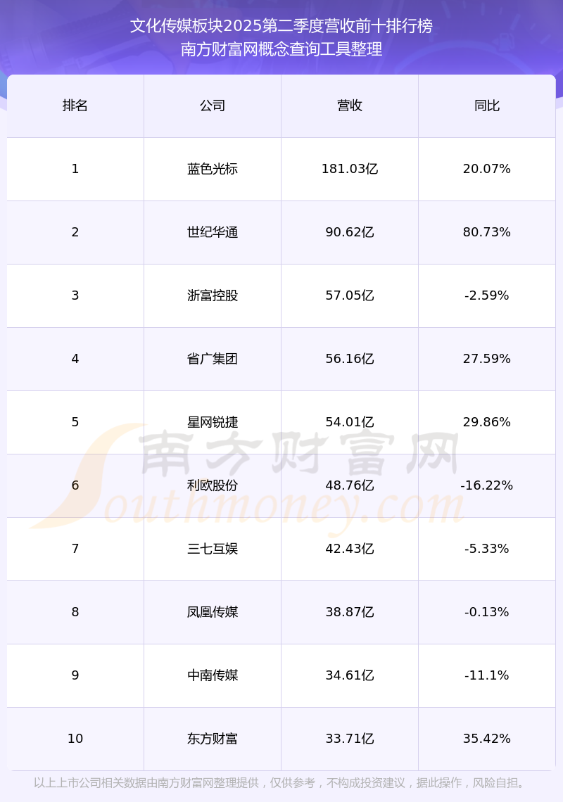 按照开云手机web版登录入口概念查询工具统计,该股所属板块为文化传媒板块,该板块共有240只股票,吉视传媒2025第二季度营收在该板块中排名为第95名,该板块2025第二季度营收排名前十的股票如下表: