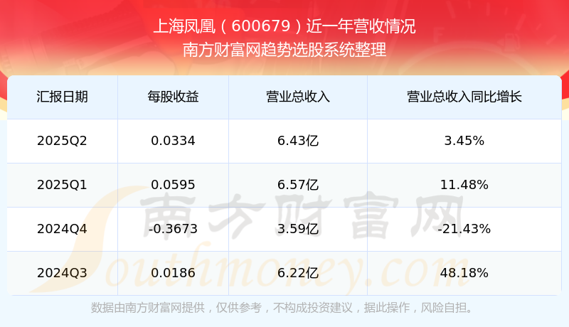 上海凤凰2025年第二季度显示,公司主营收入6.43亿元,同比3.45%;归母净利润1718.53万元,同比40.95%;扣非净利润1151.44万元,同比9.96%;
