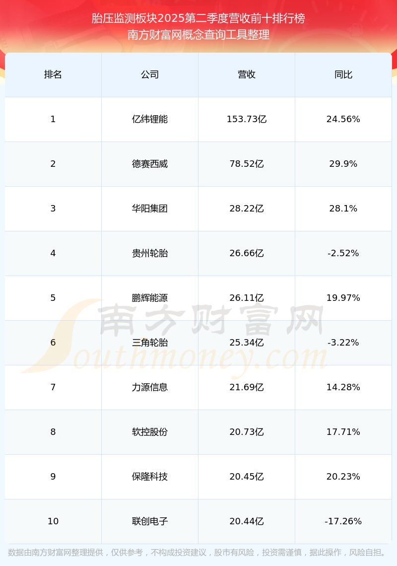 按照开云手机web版登录入口概念查询工具统计,该股所属板块为胎压监测板块,该板块共有38只股票,三角轮胎2025第二季度营收在该板块中排名为第6名,该板块2025第二季度营收排名前十的股票如下表: