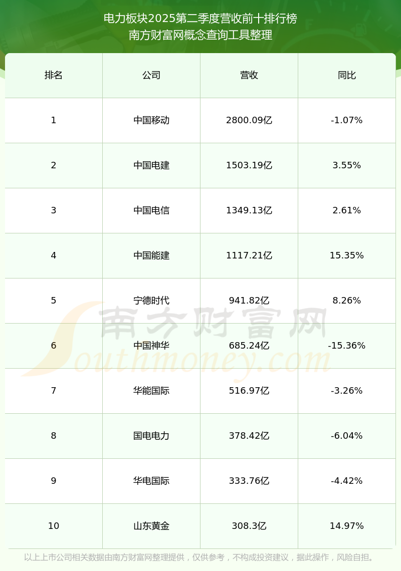 按照开云手机web版登录入口概念查询工具统计,该股所属板块为电力板块,该板块共有237只股票,华银电力2025第二季度营收在该板块中排名为第97名,该板块2025第二季度营收排名前十的股票如下表: