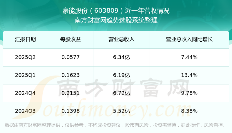 豪能股份股票近一年营收情况如下表: