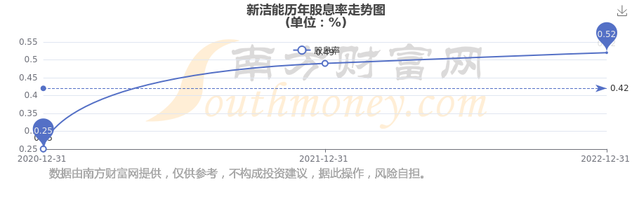 近年新洁能年度股息率走势如下图: