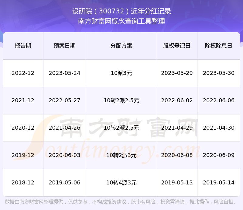 一、设研院(300732)股票分红记录