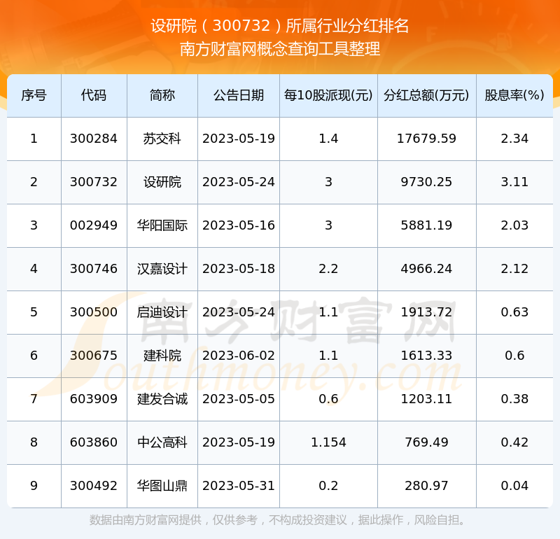 二、设研院300732行业分红排名
