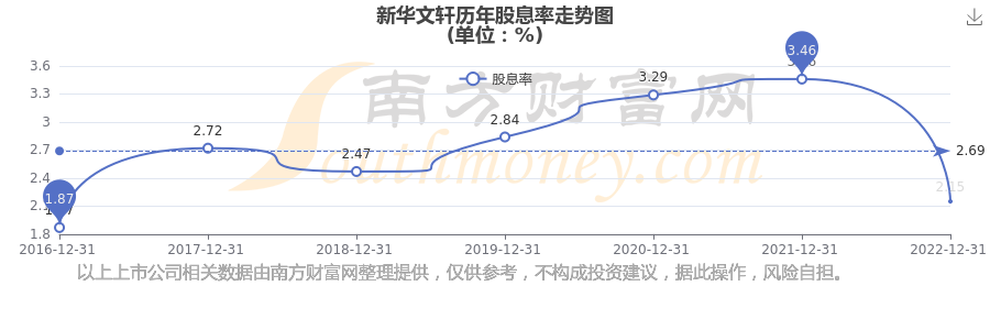 近年新华文轩年度股息率走势如下图: