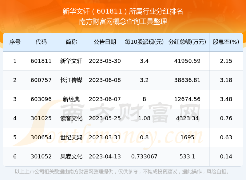 二、新华文轩601811行业分红排名