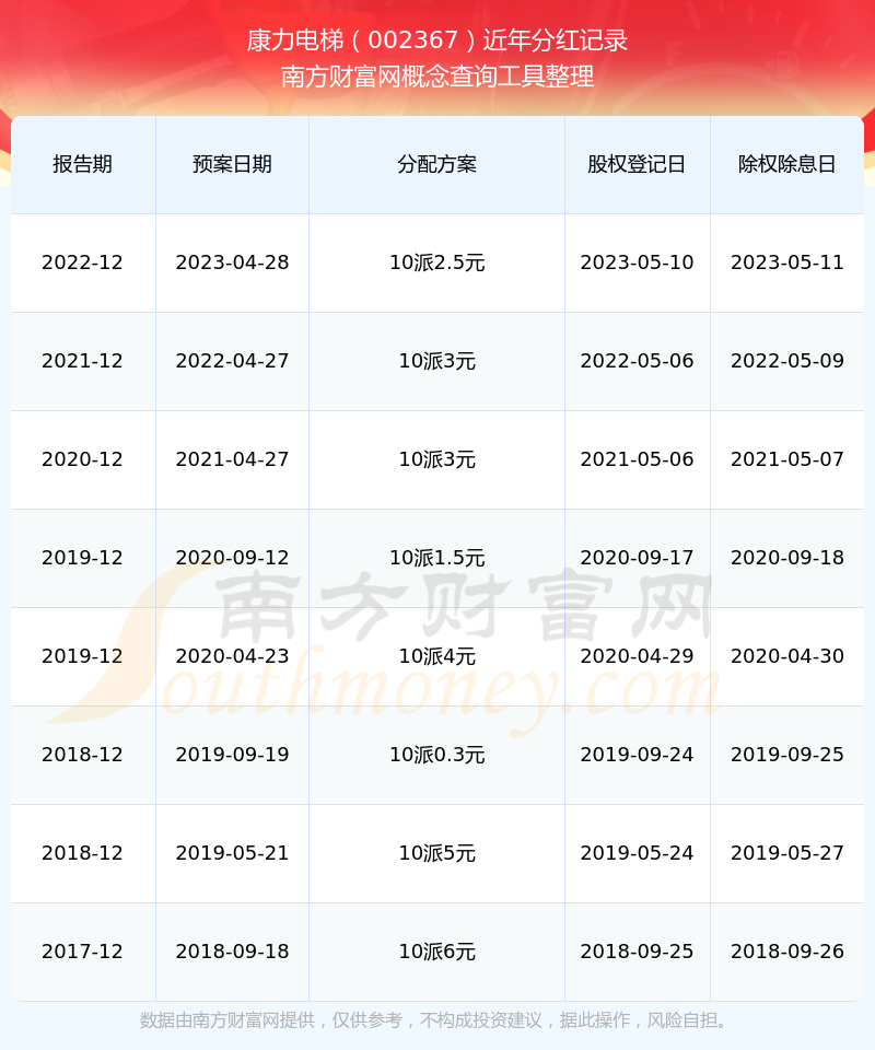 康力电梯最新一次公布的分红方案:10派2.5元。