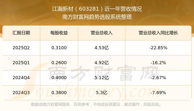 江瀚新材股票近一年营收情况如下表: