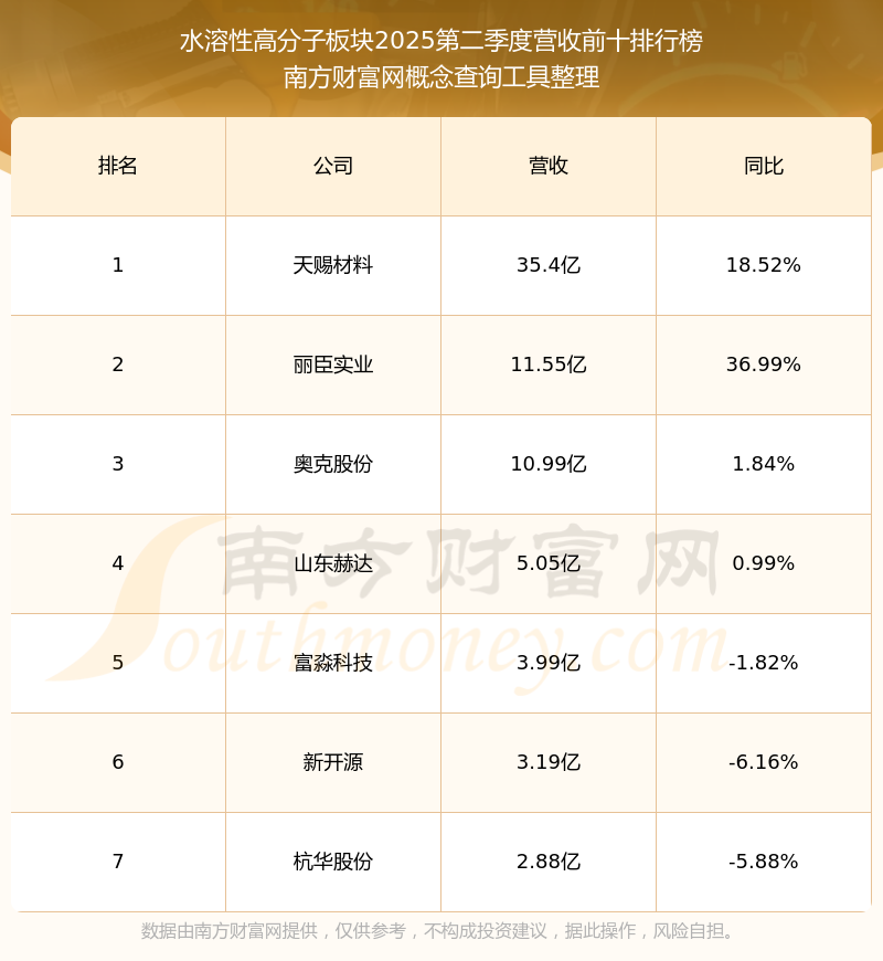 按照开云手机web版登录入口概念查询工具统计,该股所属板块为水溶性高分子板块,该板块共有7只股票,富淼科技2025第二季度营收在该板块中排名为第5名,该板块2025第二季度营收排名前十的股票如下表: