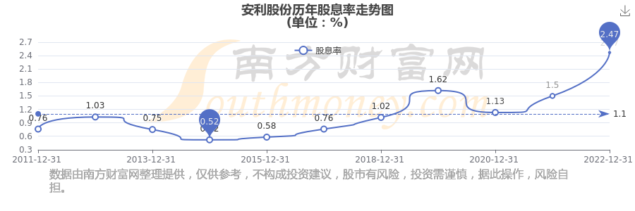 近年安利股份年度股息率走势如下图: