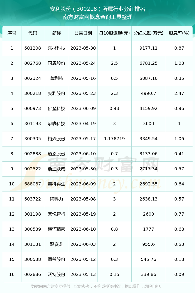 二、安利股份300218行业分红排名