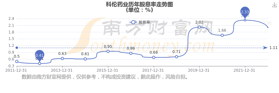 近年科伦药业年度股息率走势如下图: