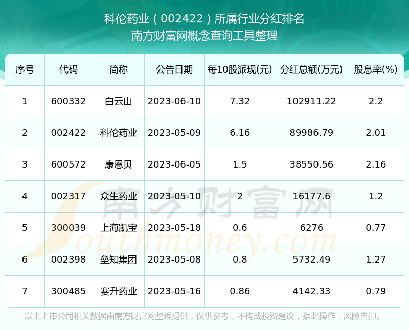 二、科伦药业002422行业分红排名
