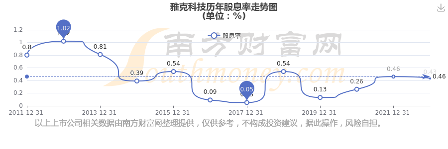 雅克科技最新一次公布的分红方案为10派3.2元。本次权益分派股权登记日为2023年5月30日,除权除息日为2023年5月31日,派息日为2023年5月31日。