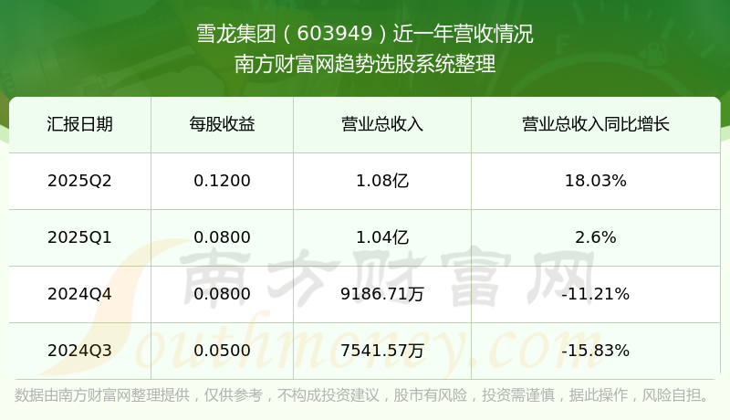 雪龙集团2025年第二季度显示,公司主营收入1.08亿元,同比18.03%;归母净利润2350.24万元,同比69.74%;扣非净利润1815.94万元,同比102.43%。