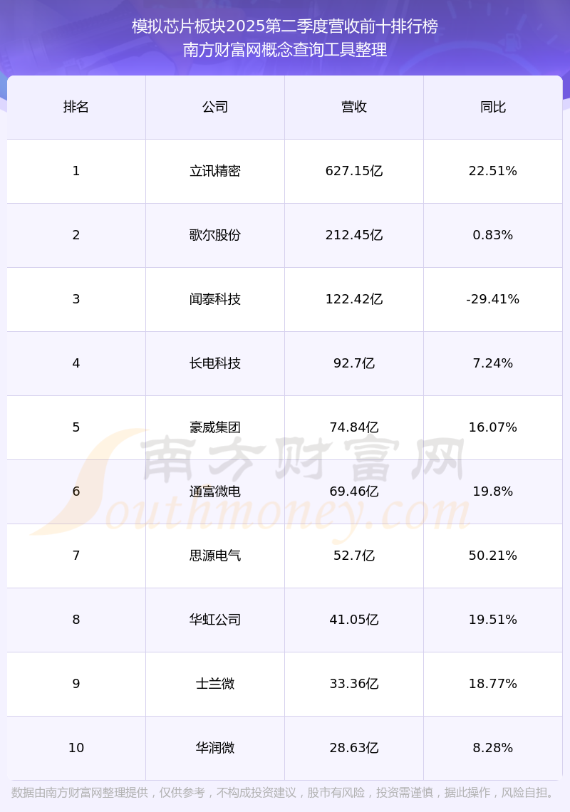 按照开云手机web版登录入口概念查询工具统计,该股所属板块为模拟芯片板块,该板块共有63只股票,帝奥微2025第二季度营收在该板块中排名为第55名,该板块2025第二季度营收排名前十的股票如下表: