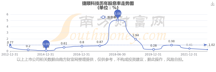 捷顺科技最新一次公布的分红方案:10派0.3元。