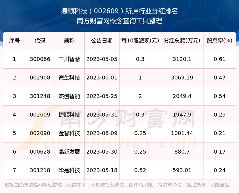 捷顺科技所属行业股票分红排名情况(2025/11/18)