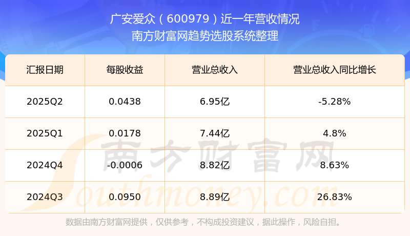 广安爱众股票近一年营收情况如下表: