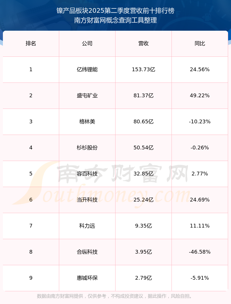 按照开云手机web版登录入口概念查询工具统计,该股所属板块为镍产品板块,该板块共有9只股票,盛屯矿业2025第二季度营收在该板块中排名为第2名,该板块2025第二季度营收排名前十的股票如下表: