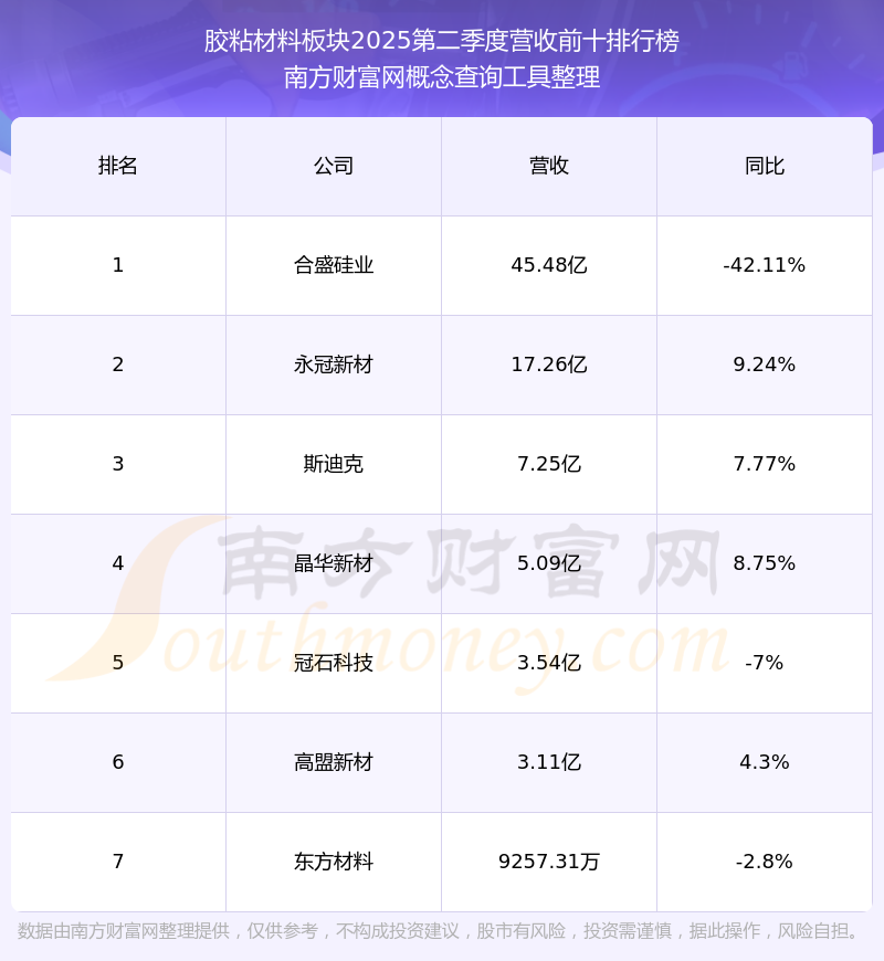按照开云手机web版登录入口概念查询工具统计,该股所属板块为胶粘材料板块,该板块共有7只股票,晶华新材2025第二季度营收在该板块中排名为第4名,该板块2025第二季度营收排名前十的股票如下表: