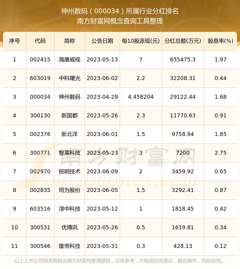 按照开云手机web版登录入口趋势选股系统统计,神州数码所属行业为计算机设备行业,计算机设备行业分红排名情况如下表: